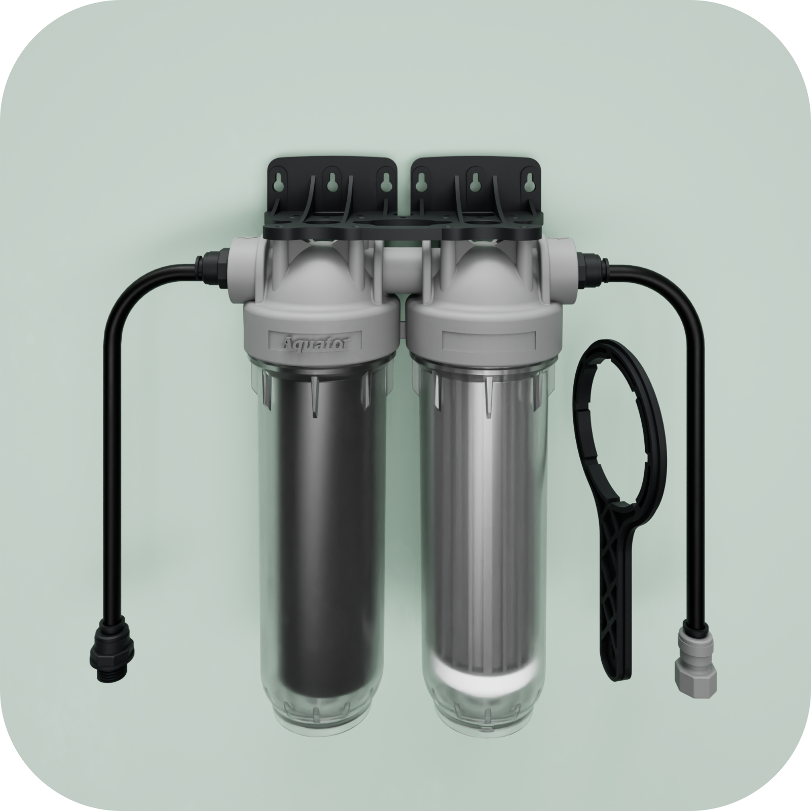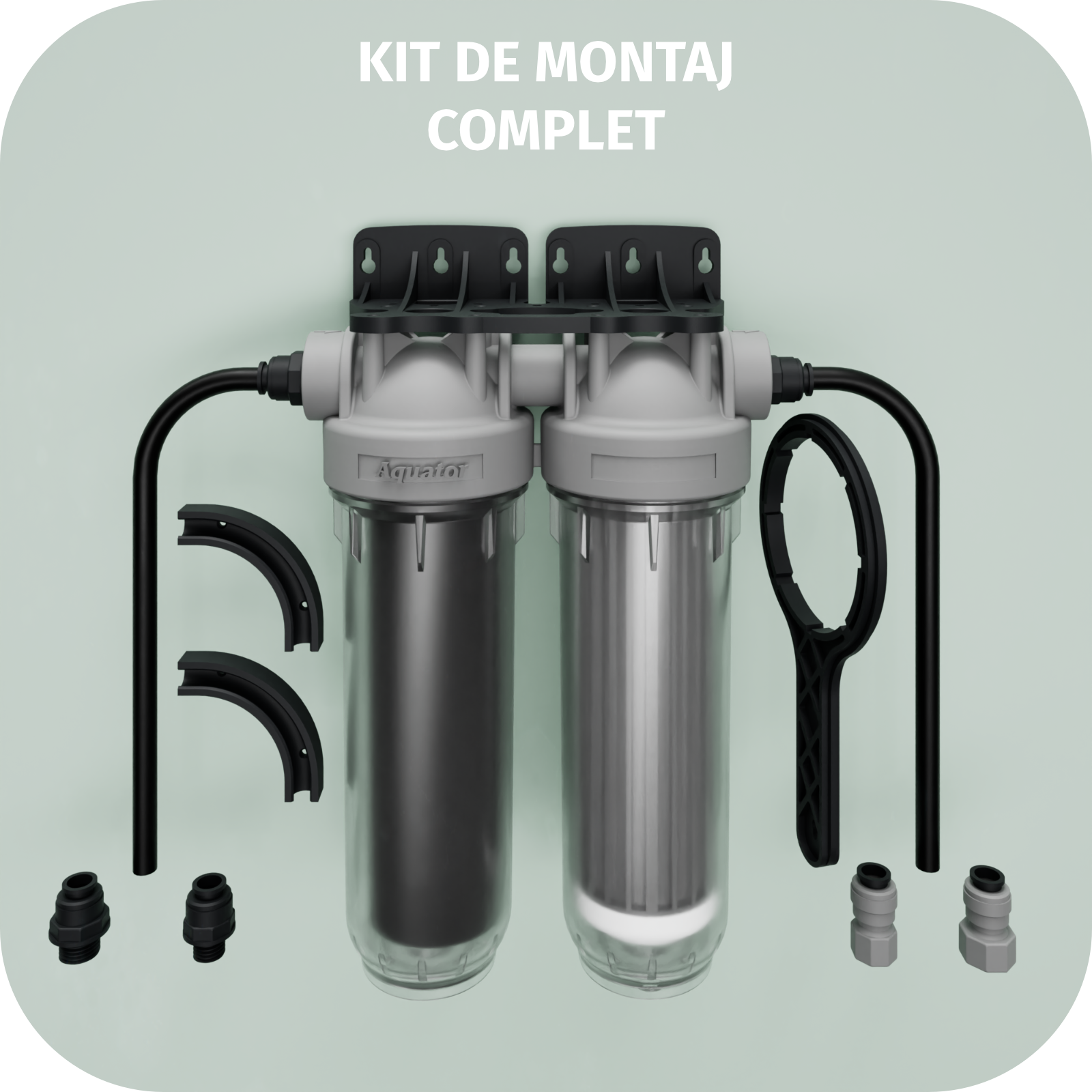 Filtru de apa, Aquator Premium Maxi Duplex este destinat filtrării apei din rețeaua publică. Carcasa acestuia este antibacteriană iar recipientele cartușelor sunt transparente. Cartușele filtrante se află in interiorul filtrului. Acest filtru este compatibil cu: