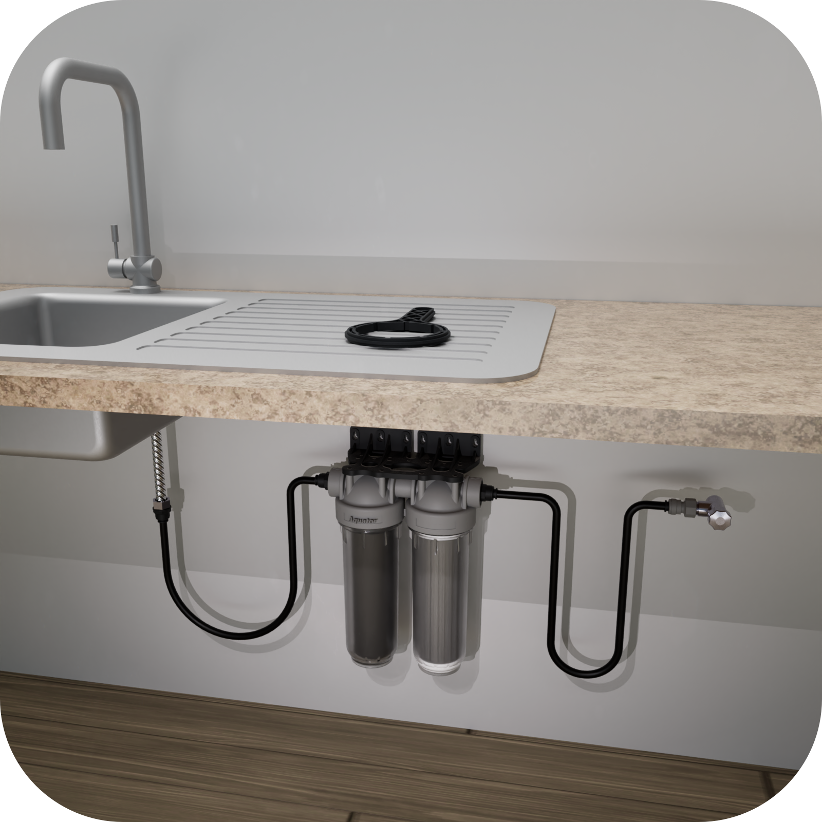 Filtrul Premium Maxi Duplex se montează sub chiuveta. Se conectează prin racorduri flexibile între conducta de apă rece și bateria chiuvetei. El este format din două carcase, una conține o sită lavabilă din inox care filtrează mecanic la 50 de microni și o carcasă care conține rezerva din cărbune activ si argint, aceasta din urma filtreaza mecanic la 0,5 microni. Sita lavabila din inox prelungește durata de viață și capacitatea de filtrare mecanică a cartusului din cărbune.
