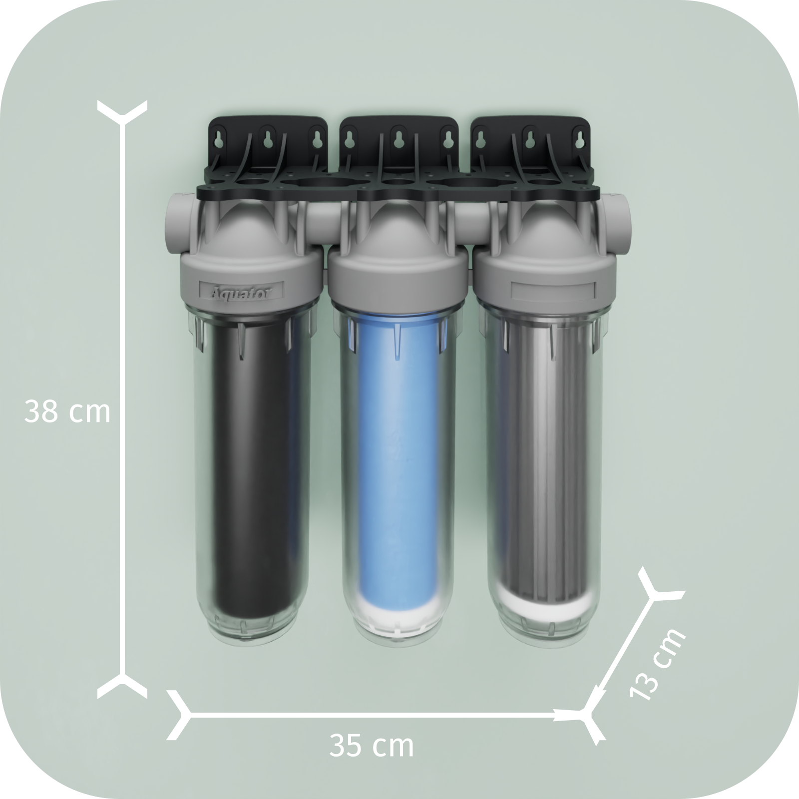 Filtru de apa, Aquator Premium Maxi Triplex este destinat filtrării apei din rețeaua publică. Carcasa acestuia este antibacteriană iar recipientele cartușelor sunt transparente. Cartușele filtrante se află in interiorul filtrului. Acest filtru este compatibil cu